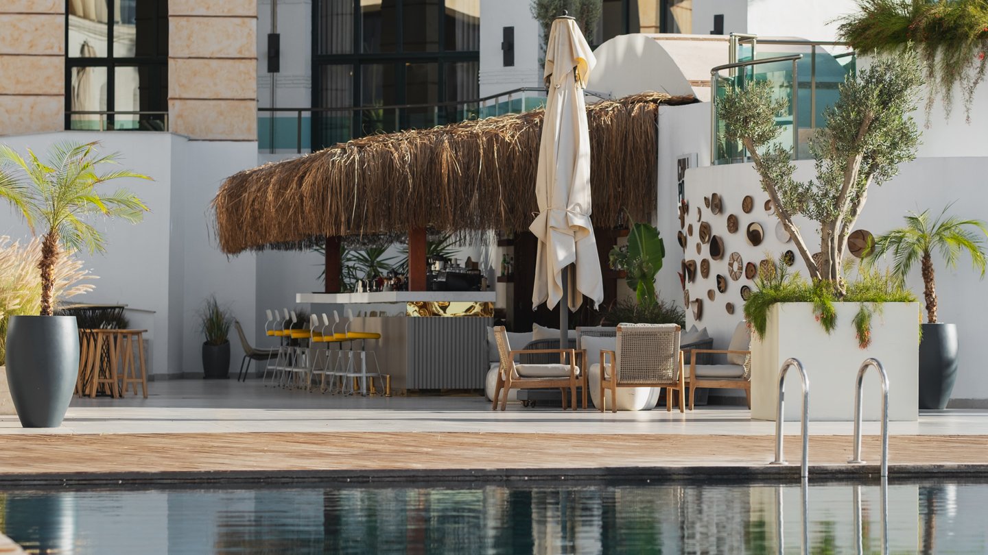 Päikesevarjud basseini ääres