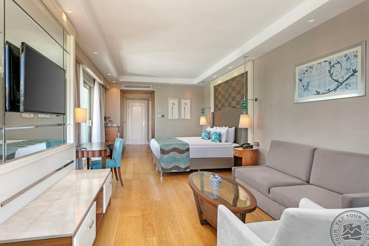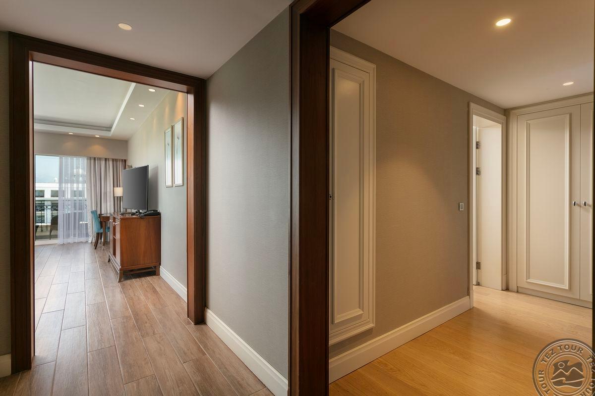 42 kahetoalist family pool suite (basseinivaade, neist 14 family pool garden, asuvad 1. korrusel, otsepääsuga basseini äärde, 28 family pool balcony, 2. ja 3.korrusel, 2 magamistuba uksega, 2 vannituba dušiga, 2 TV, mahub 5 in., 80 m2).