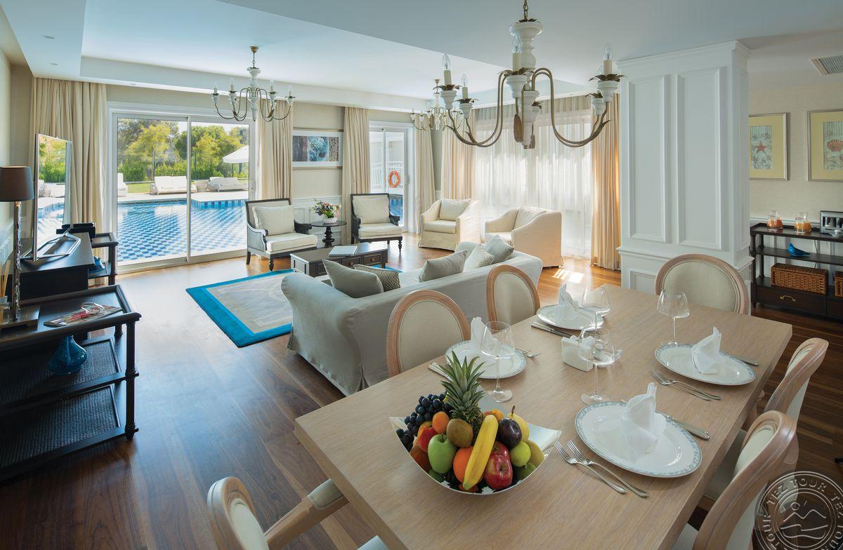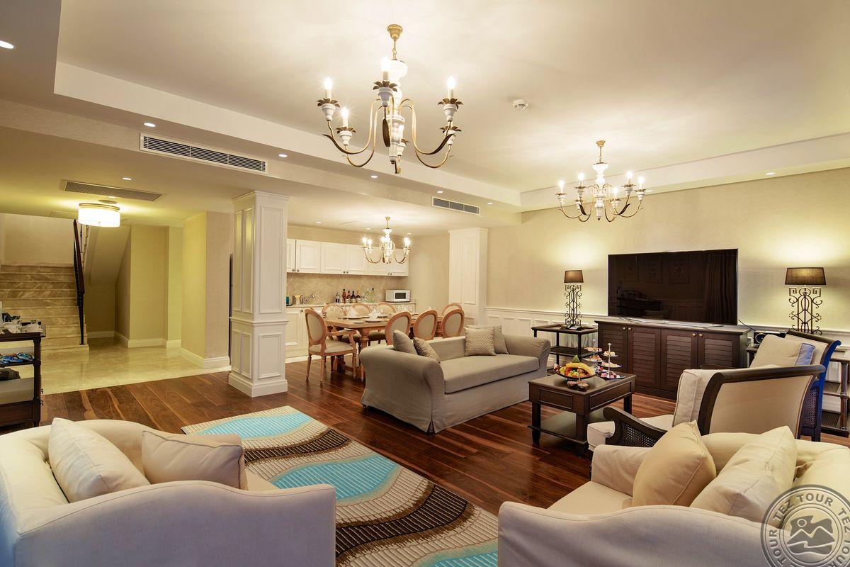 2 kahetasandilist superior villa oma basseiniga (1. tasandil: elutuba sööginurgaga, ameerika köök, teenijate tuba, vannituba dušiga, terrass; 2. tasandil: 3 magamistuba uksega, 3 vannituba: üks vanni ja dušiga ning 2 dušiga, terrass, 4 TV,max 8+1 in., 610 m2, VIP-teenus);