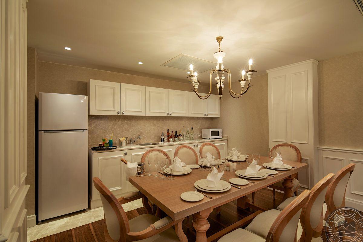 1 kahetasandiline Presidential Villa oma basseiniga (1. tasandil: elutuba sööginurgaga, köök, barbeque nurk koos aiamööbliga, parkimine 1-le autole, terrass; 2. tasandil: saun, türgi saun, aurusaun, massaažikabinet, 5 magamistuba uksega, 5vannituba: üks mullivanniga ja 4 dušiga, terrass, max 9+1 in., 2700 m2, VIP-teenus);
