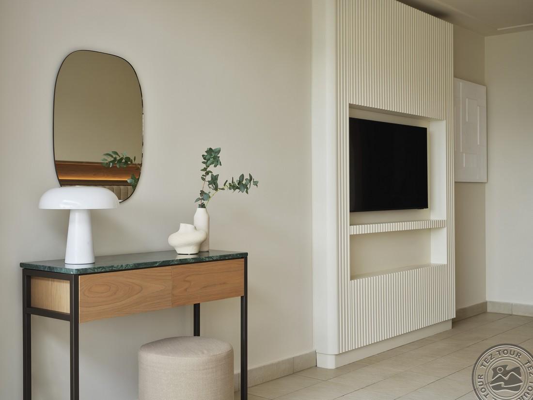 deluxesuiteSV 1-bedroom(merevaade, peamaja 4.korrusel, kahetoaline, magamistuba ja elutuba (ilma vaheukseta), DBL king-size, sohva, mahub 3 in., 73 m2),