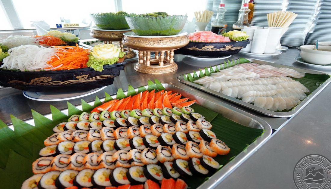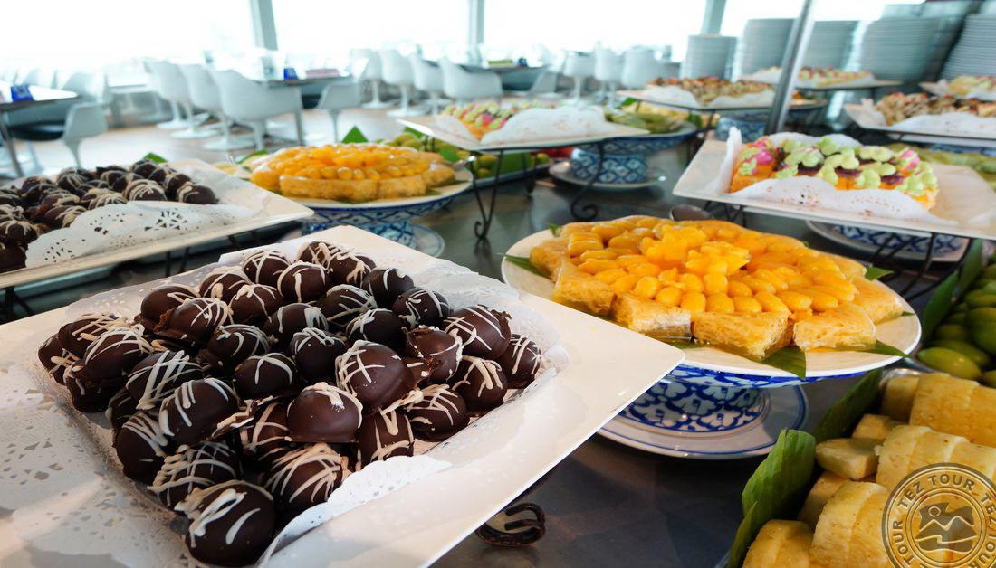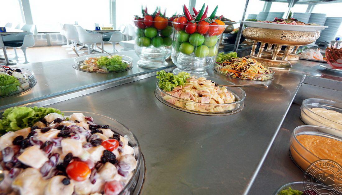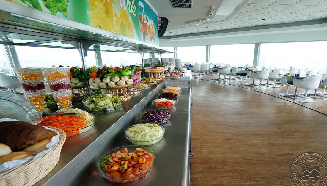 • restoranid: 2 (üks neist asub pöörleval platvormil panoraamvaatega linnale, 54–55 korrustel)