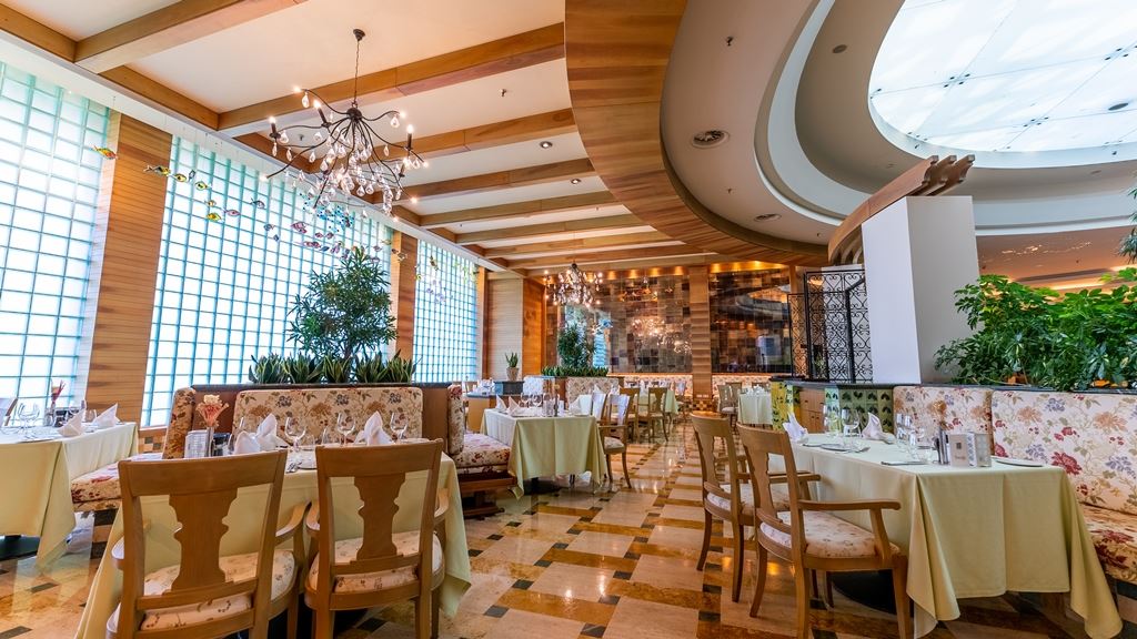 | A la carte restoranid | HAREM A LA CARTE: (köök International, ilma eelneva broneeringuta, 24 tundi) PESCADO A LA CARTE: (köök Hispaania, eelbroneering vajalik, 19:00 - 23:00) L'ANCORA A LA CARTE: (köök Itaalia, eelbroneering vajalik, 19:00 - 23:00) ELIA A LA CARTE: (köök Kreeka, eelbroneering vajalik, 19:00 - 23:00) TURKUAZ A LA CARTE: (köök International, eelbroneering vajalik, 19:00 - 23:00) |